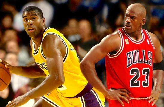 先看看皮尔斯在后场位置上的选择,他毫不犹豫地将魔术师约翰逊和乔丹招入麾下。八九十年代的联盟,堪称这两位巨星的舞台。魔术师约翰逊是湖人SHOW TIME的灵魂人物,五次总冠军的荣耀就是他卓越领导力的最好证明,说他是史上最佳控卫,想必无人会质疑。而乔丹,更是NBA历史上神一般的存在,他的荣誉和实力就像一座无法逾越的高峰,矗立在篮球之巅,是后来者仰望和追赶的目标。